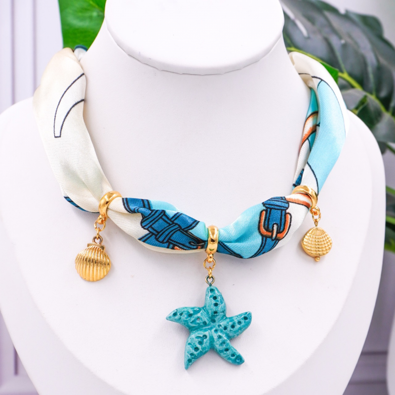 hermosos collares realizados con pañoletas o bandana con dije de porcelana