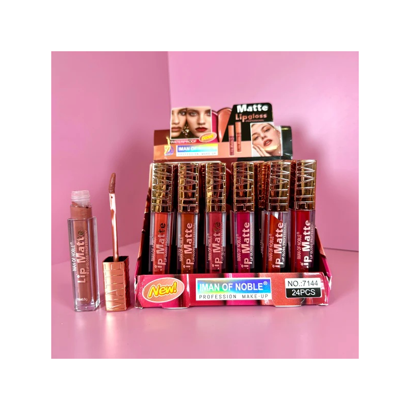 Brillo labial con acabado mate que ofrece color intenso y textura ligera en los labios.