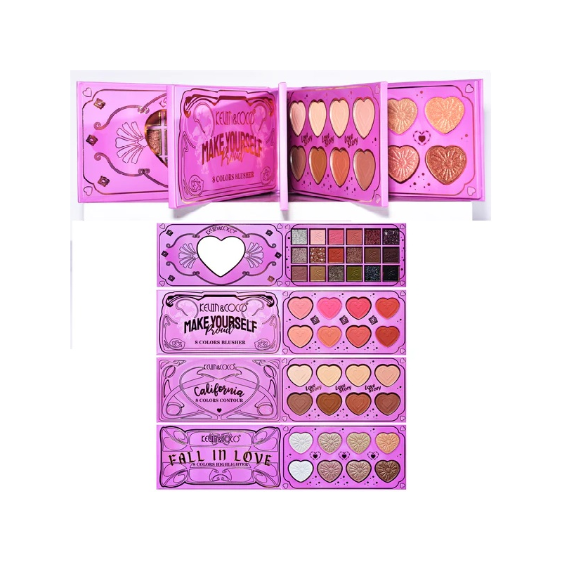 El Kit de Maquillaje Kevin & Coco es una joya todo en uno para quienes aman expresarse a través del color y la creatividad. Este set combina sombras de ojos, rubores, contornos y highlighters, todo en un empaque elegante y práctico con diseño romántico. Su fórmula de alta pigmentación y textura suave permite lograr desde looks naturales hasta los más atrevidos, adaptándose a cualquier ocasión.