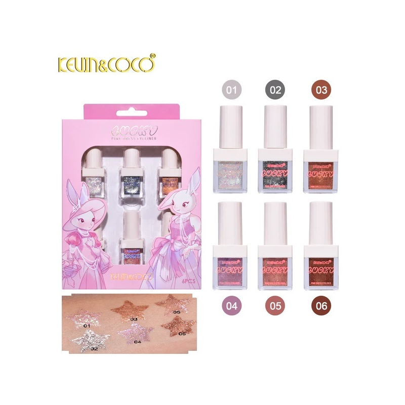 El Delineador de Ojos Kevin & Coco tipo Glitter transforma cualquier look en una declaración de estilo. Su fórmula líquida, cargada de destellos ultrabrillantes, permite crear delineados luminosos que atrapan la luz y realzan la mirada con un toque glamuroso. Gracias a su punta fina y precisa, puedes lograr desde líneas sutiles hasta trazos intensos y creativos con facilidad.
