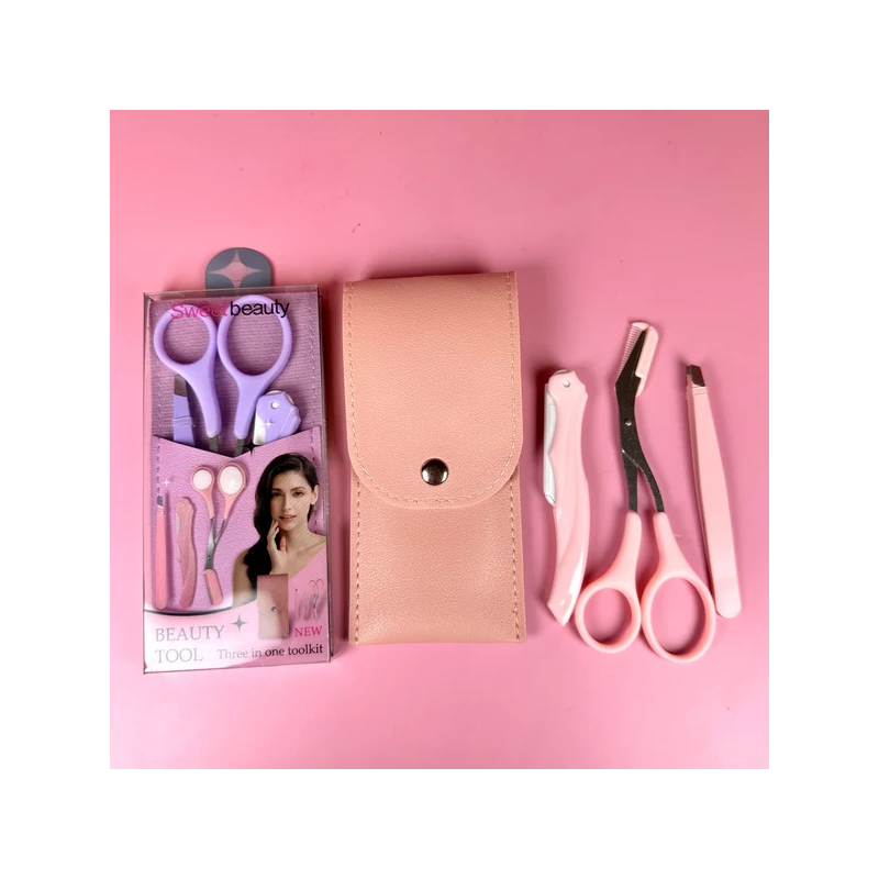 ✨ SET PARA CEJAS PORTATIL– PERFILADOR, TIJERAS Y PINZAS CON BOLSITA DE CUERO SINTÉTICO