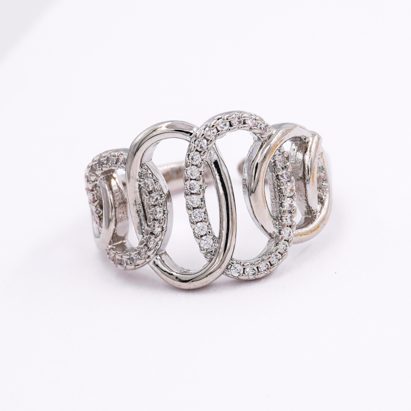 ANILLO PLATEADO OVALOS CON CRISTALES