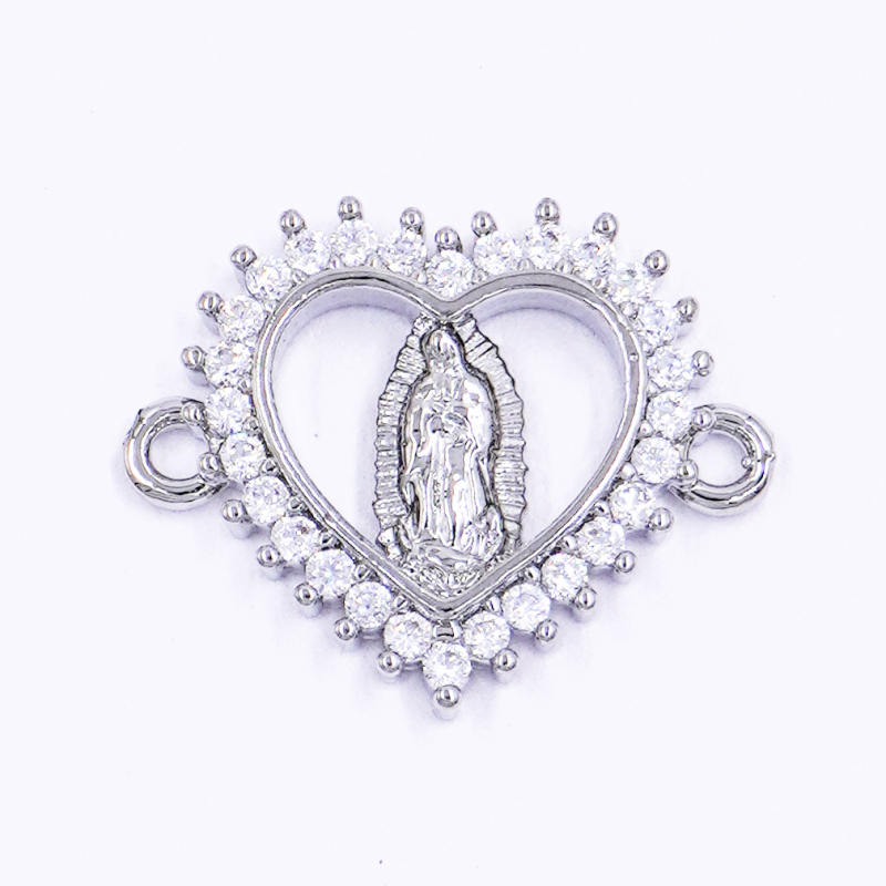 DIJE DE RODIO CONECTOR GUADALUPE CORAZON PLATEADO