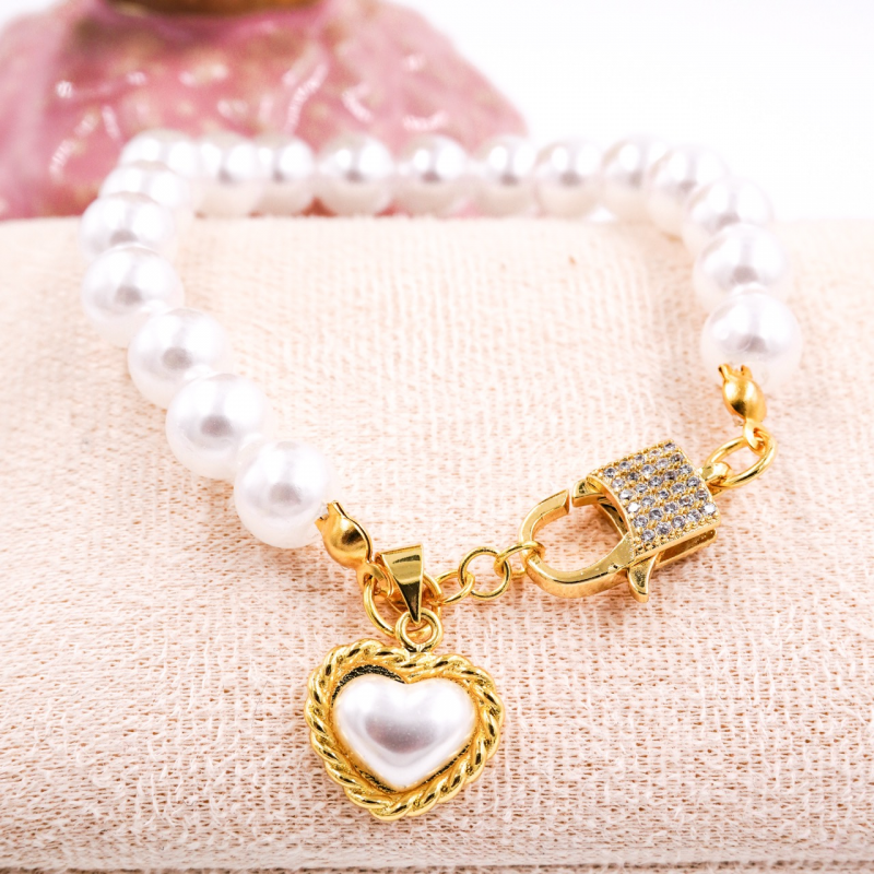 pulsera perlas con broche cristales